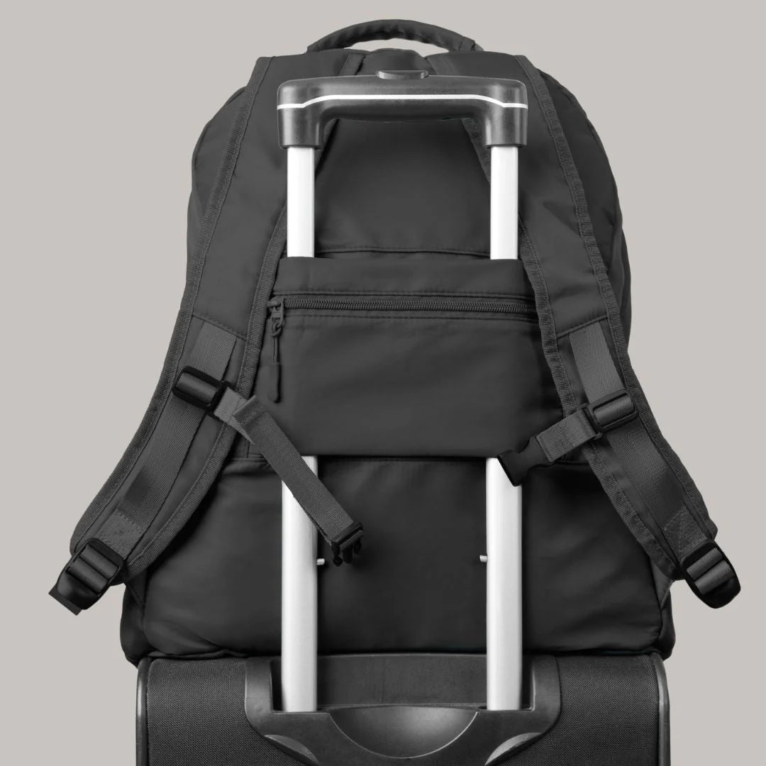 Compact enough to tuck neatly beneath most airline seats — no overhead space needed.