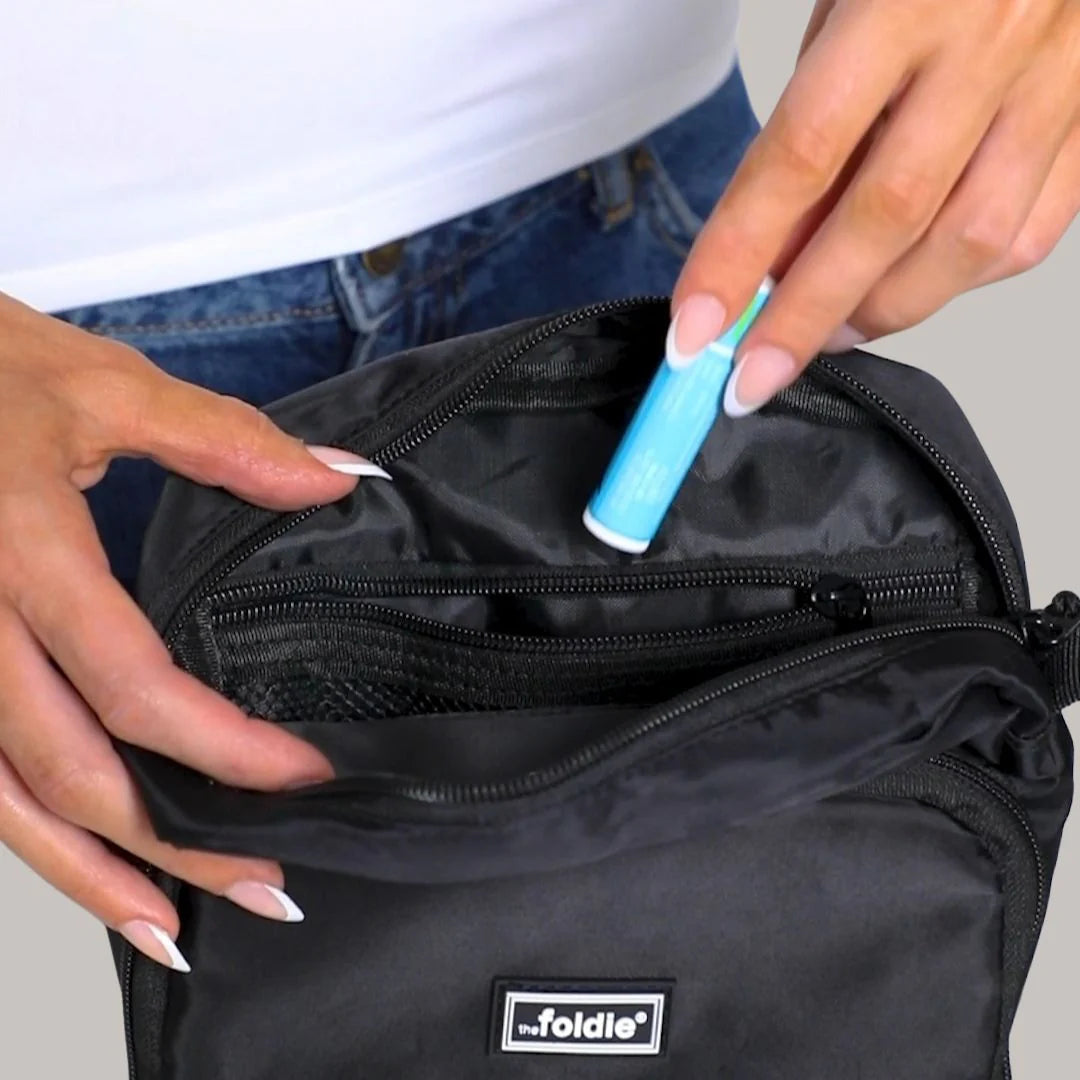 Yes! The Foldie Travel Bag is designed to be airline-approved and fits comfortably under most airplane seats and overhead bins. It's the perfect personal item for short trips or to keep your essentials close by during your flight.