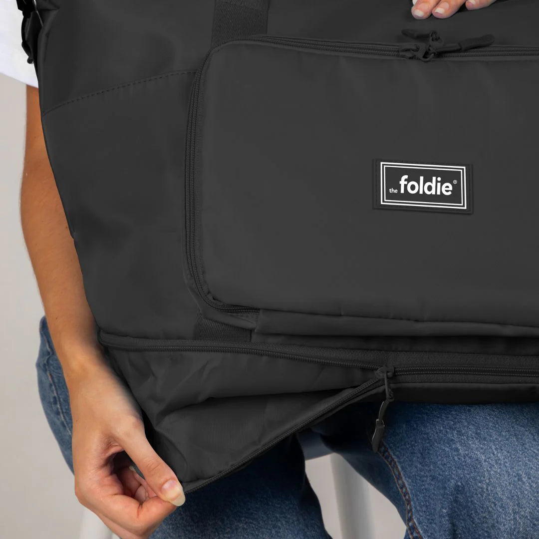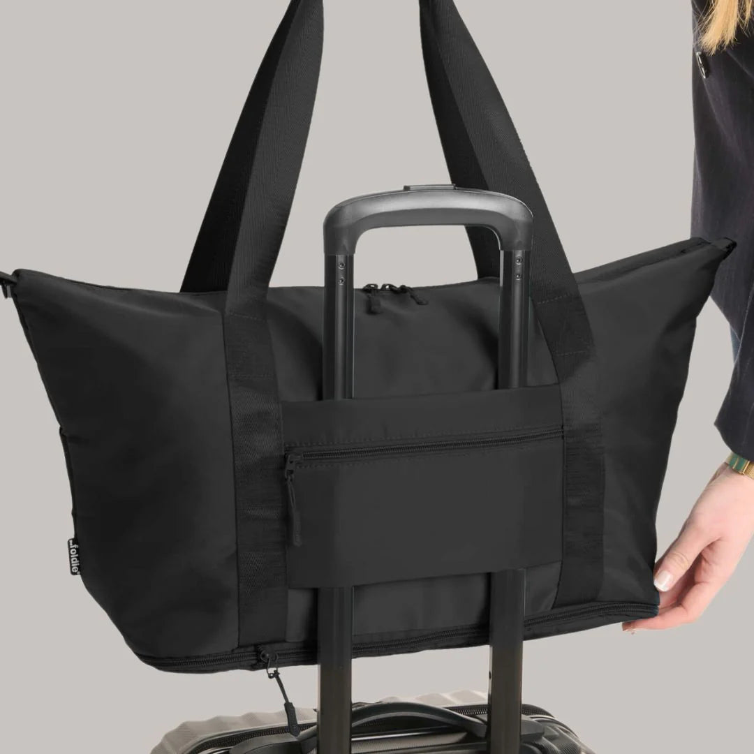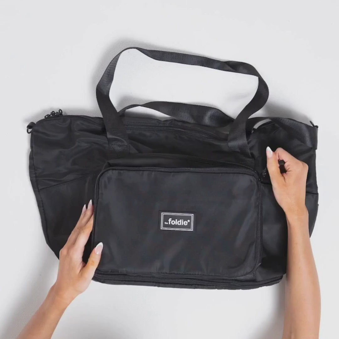 Yes! The Foldie Travel Bag is designed to be airline-approved and fits comfortably under most airplane seats and overhead bins. It's the perfect personal item for short trips or to keep your essentials close by during your flight.